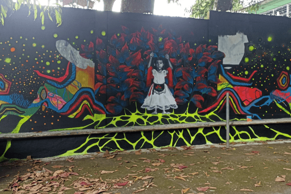 El concepto detonador se basa en el cultivo del tabaco, ya que esta materia prima tiene una larga historia en el crecimiento de la sociedad tuxtleca. El estilo implementado en este proyecto es el movimiento expresionista, dentro del mural vemos la base de colores vibrantes como uno de sus mayores soportes visuales así como un color neutro como lo es el negro para tener un balance visual que complemente las formas orgánicas que se generan del suelo al muro siendo acompañado de pintura neón que al ser reflejado con una luz ultra violeta genera una experiencia inmersiva de colores, intentando generar emociones con su aspecto fluorescente dentro de un área poco transitada como son los andadores de bodega.